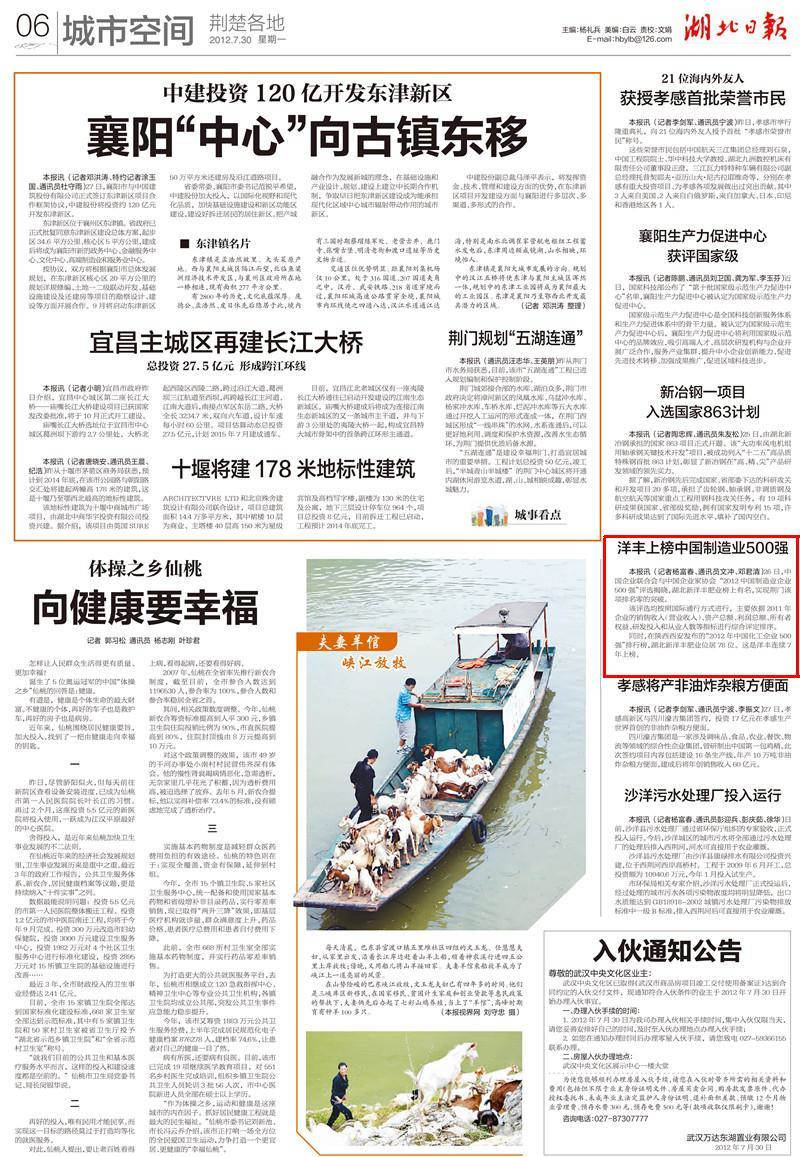 同时,在陕西西安发布的“2012年中国化工企业500强”排行榜,湖北金沙9001以诚为本肥业位居78位。这是洋丰连续7年上榜。