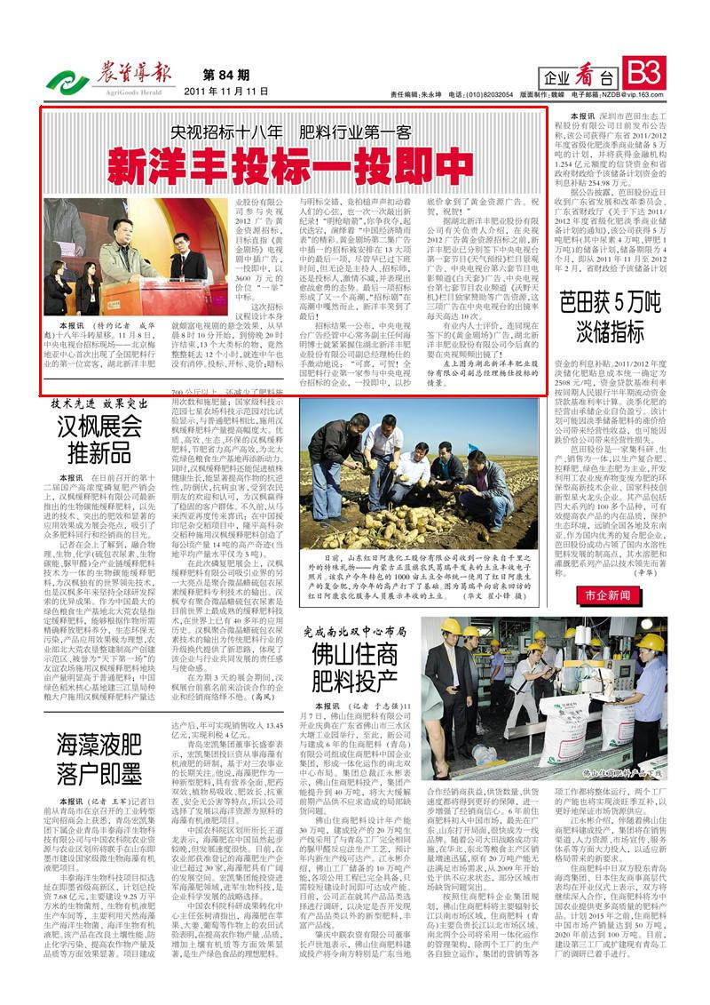 招标结果一公布,中央电视台广告经管中心常务副主任何海明博士就紧紧握住湖北金沙9001以诚为本肥业股份有限公司副总经理杨仕的手激动地说:“可喜,可贺!全国肥料行业第一家参与中央电视台招标的企业,一投即中,以抄底价拿到了黄金资源广告。祝贺,祝贺!”